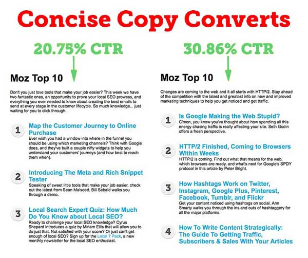 People surfing the internet don’t read entire web pages; they scan them. Their attention span is short, so you have to be concise.