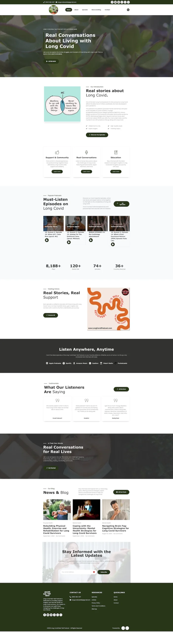 Since the website launch, the Long Covid Real Talk Podcast has increased web traffic and listener engagement. The user-friendly design, educational resources, and accessible episode integration have positioned the podcast as a critical resource for those living with Long Covid, making the audience feel comfortable and at ease. Katherine Marie, the podcast host, commented, “The new website has become a lifeline for so many in our community. It offers a place to find comfort, connection, and education.”