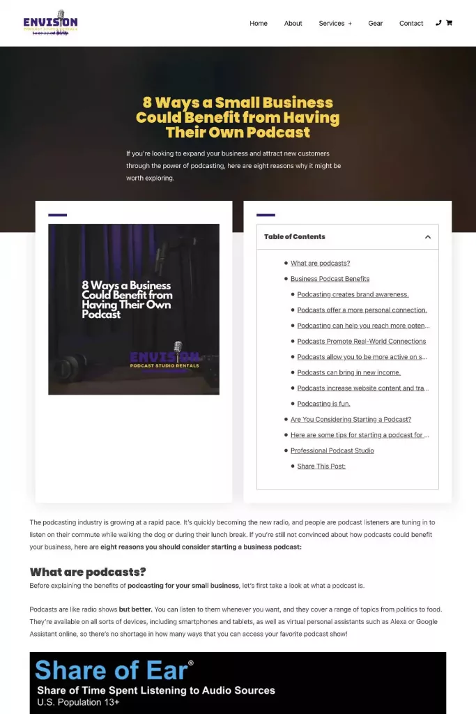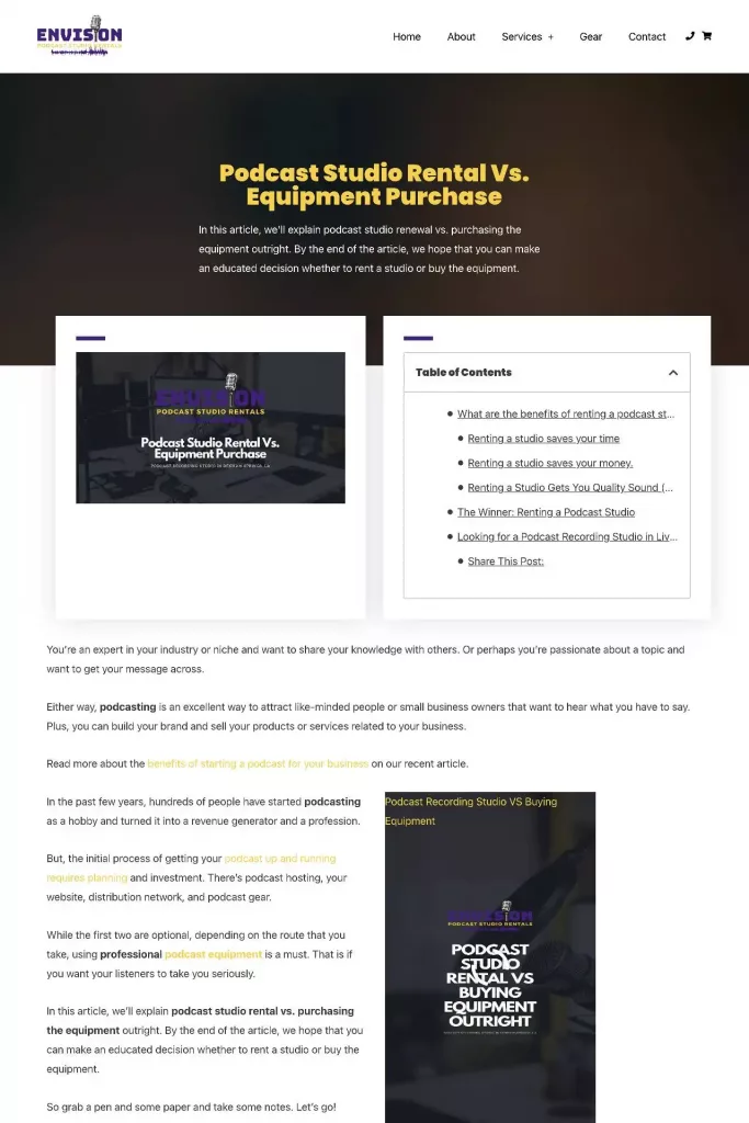 The site also promotes Envision’s podcasting services and offers visitors information on how to book time at the studio. If you are interested in learning more about Envision Podcast Studio’s website or want to discuss your project, please contact us today!