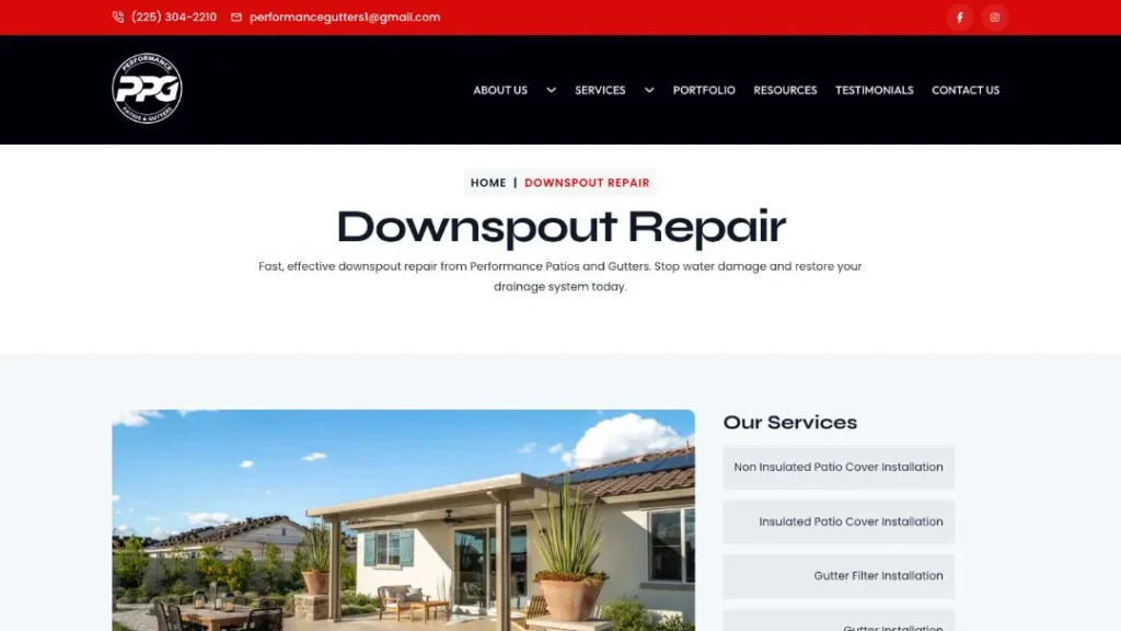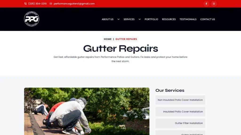 - Blog strategy We introduced categorized posts under Louisiana Weather Challenges, Gutter Maintenance Tips, and Patio Style Ideas to drive long-tail traffic.