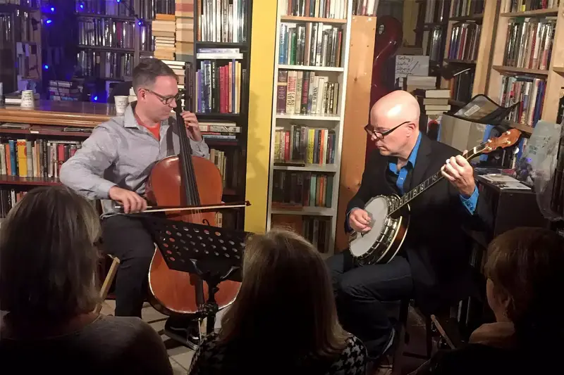 Peter initiated these sessions in June 2015, spurred by both the closure of local music venues and the suggestion of a customer, a local trumpet player who remarked on the bookstore’s potential as an intimate concert space. The events started with a performance by Kevin Quain, a well-respected local musician, which quickly sold out, setting the tone for future sessions. Although small and lacking air conditioning, the bookstore’s acoustic quality and intimate setting became a hit, drawing artists from as far as Australia.