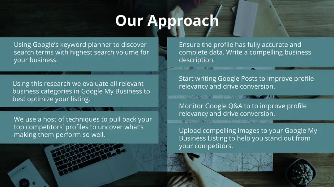 Here are the steps that we take to help our Local SEO customers rank higher in search results and bring in new customers.